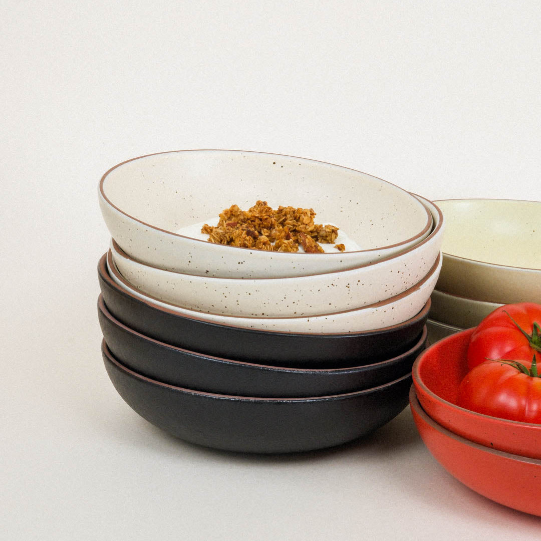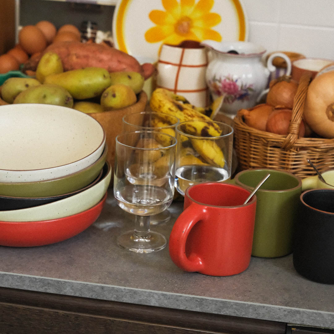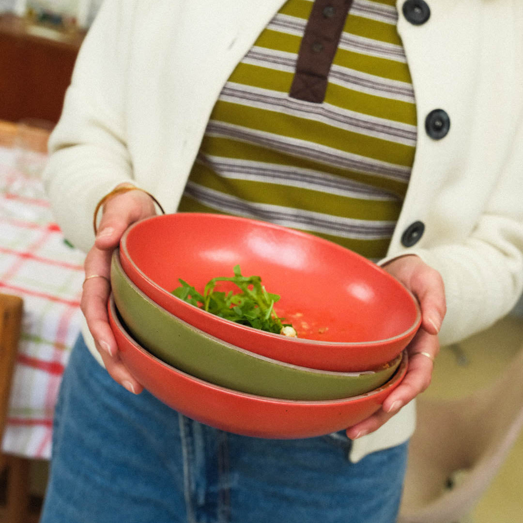 Une assiette creuse fabriquée à la main, pensée pour tous les jours. Elle passe du granola au plat mijoté sans broncher, et reste la préférée, celle qu’on sort encore chaude du lave-vaisselle.